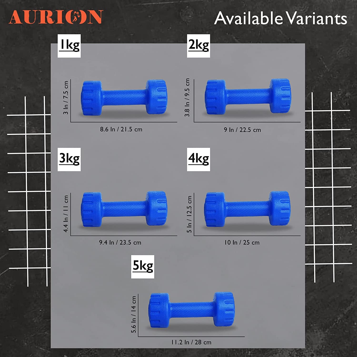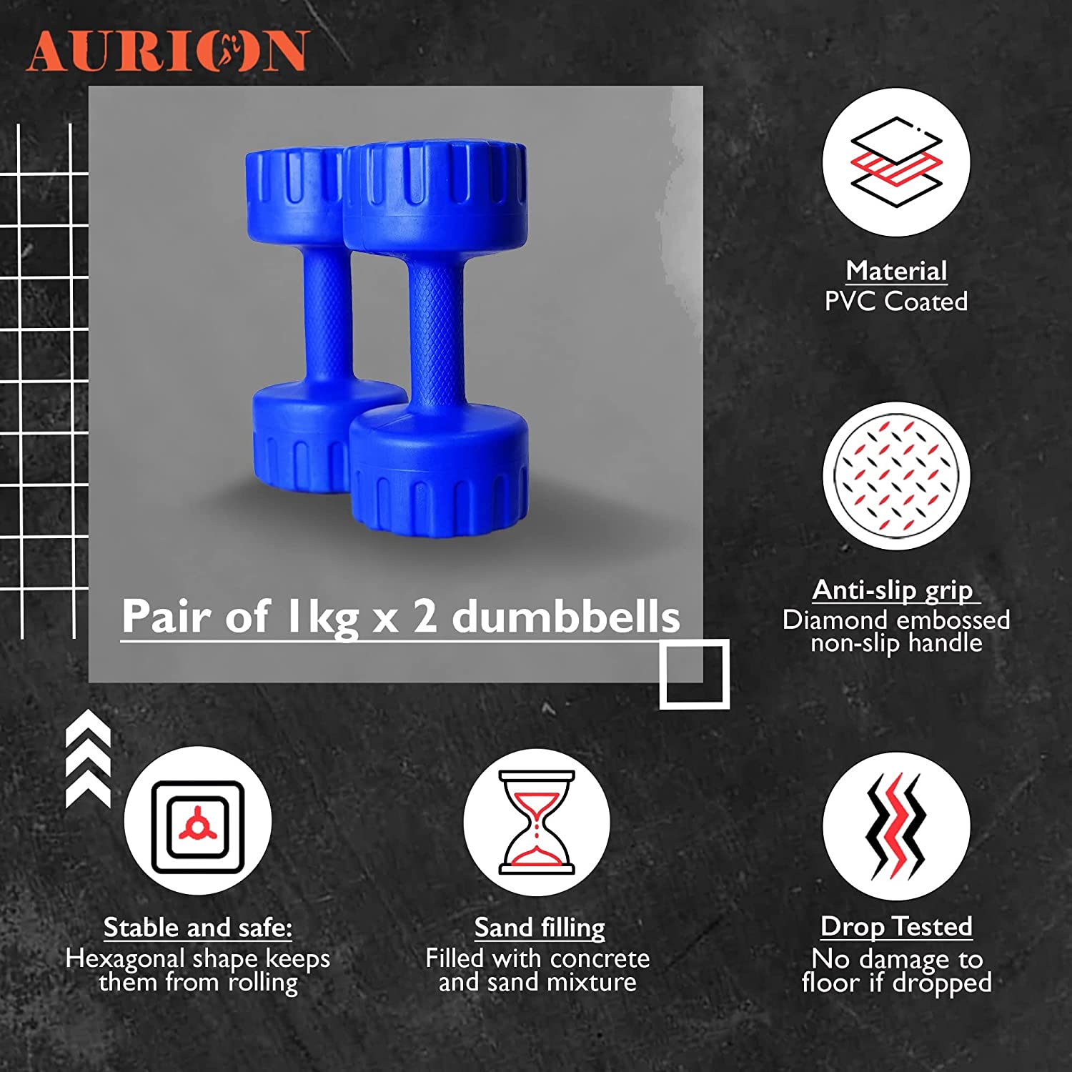 - Material - The package consists set of 2 dumbbells. Perform exercises by incorporating strength training using Aurion dumbbells. Durable PVC heads stand well against wear and tear. You'll be using these weights for exercises for a very long