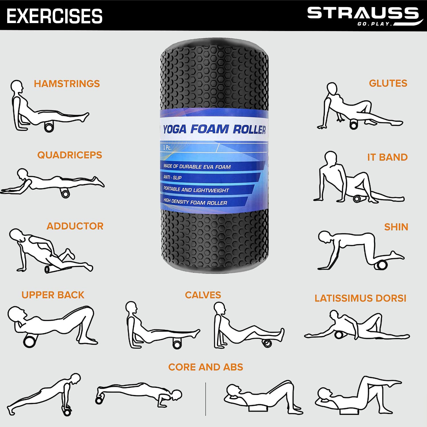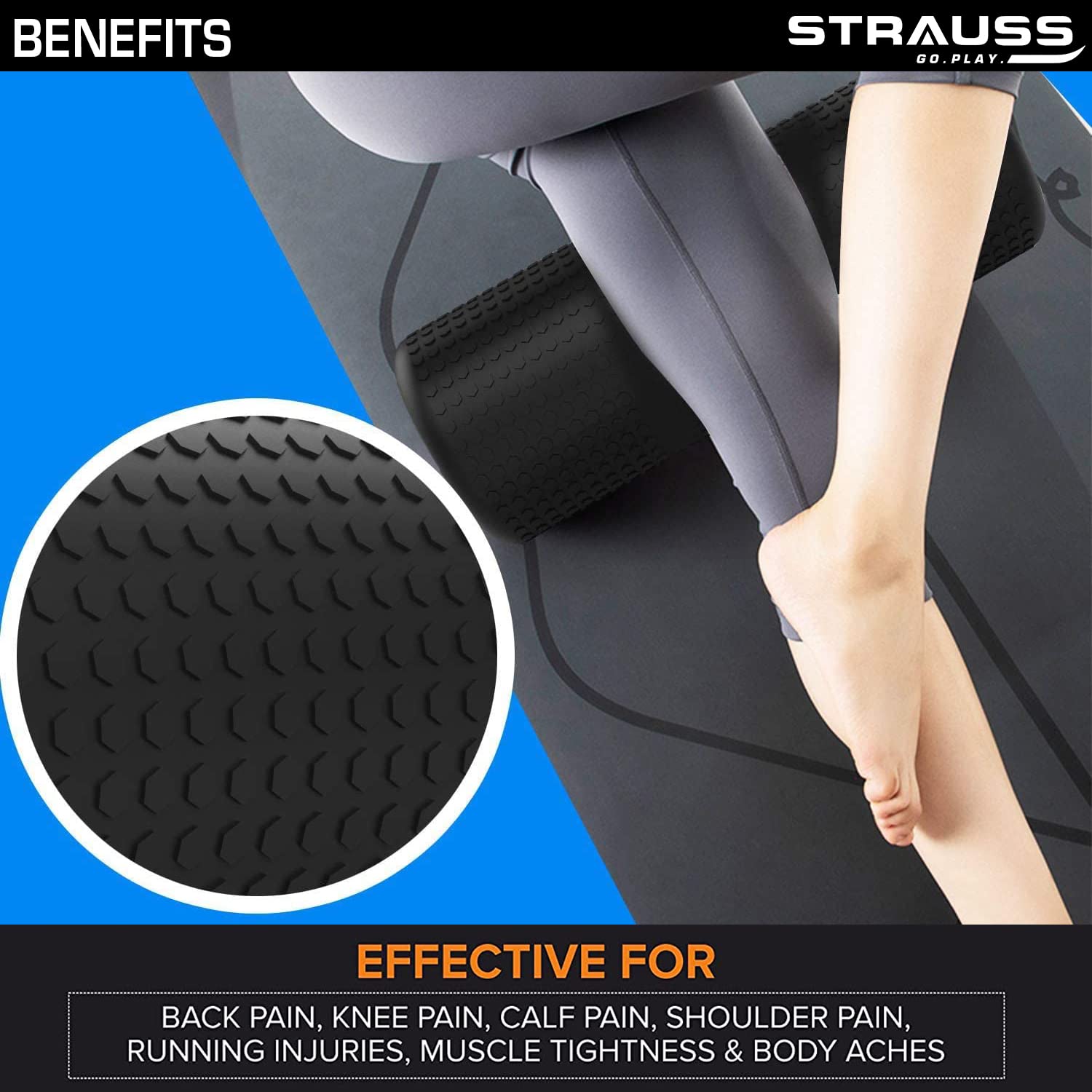 FOAM ROLLERS FOR MUSCLES: Strauss Foam Roller Is Great for Physical Therapy, Before or After Exercise, Yoga, And Massage Therapy. The Texture Roller Helps to Relieve Muscles Tension and Increase Muscle Reflexology.